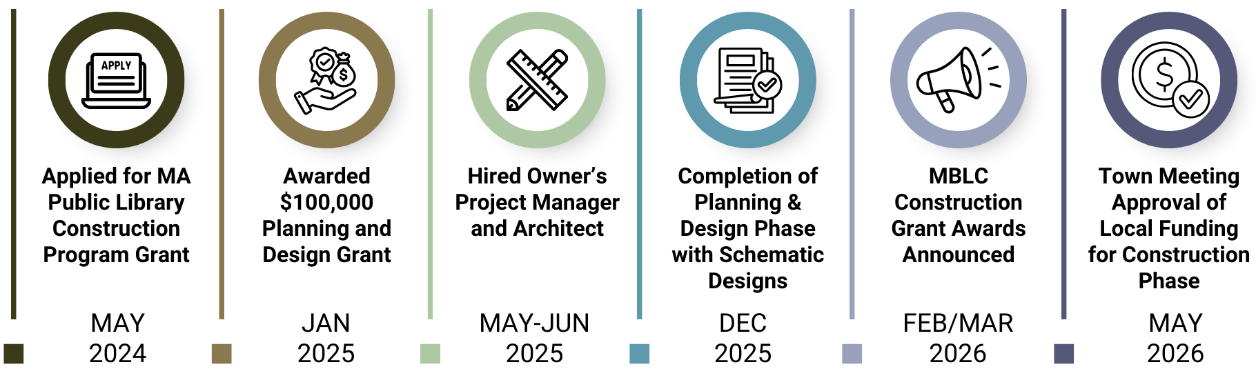 The Library Building Committee (formerly the Library Design & Planning Committee) was established at the May 2025 Town Meeting, and the Select Board appointed its members, which include Library and Town officials and residents. The Committee has hired an Owner’s Project Manager and an architect and will work with them throughout the project.