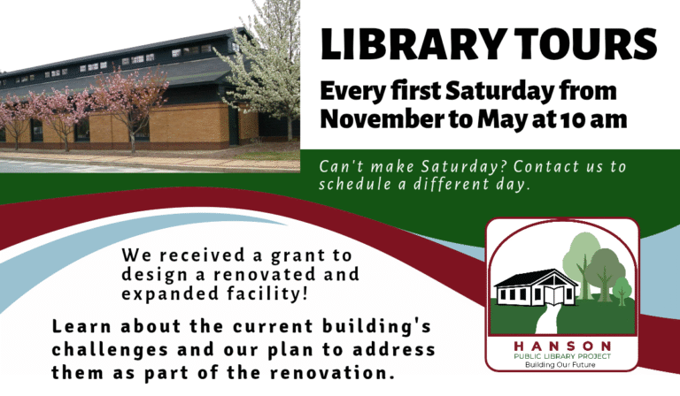 Welcome to the Hanson Public Library Project site. Here you’ll find factual, up-to-date information about the project—options under review, meeting dates, and ways to sign up for updates.