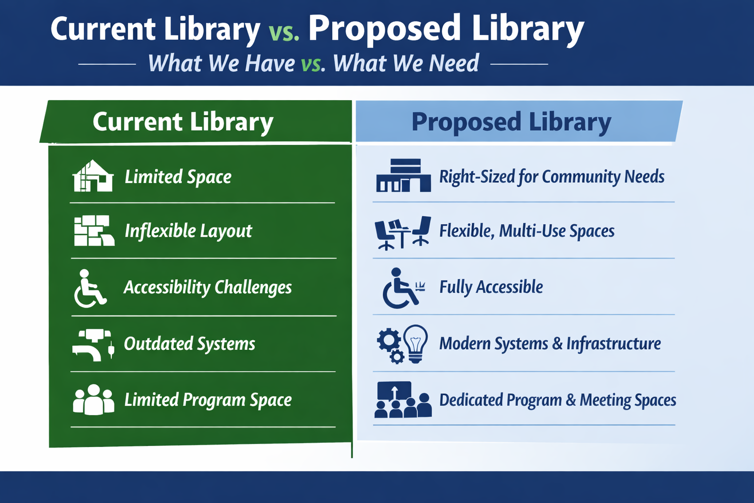During our planning process in 2024, impediments to the delivery of library services were identified through staff and patron input, guidance from a Library Building Consultant, and a Facility Conditions Assessment conducted by an architect.